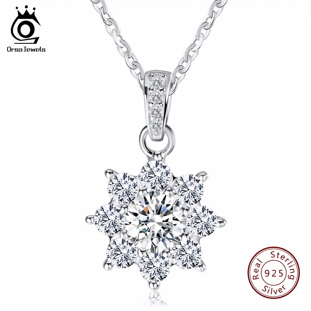 ORSA JEWELS, роскошные хрустальные подвески со снежинками и ожерельем, настоящее 925 пробы Серебряное ожерелье, подарок для женщин SN44