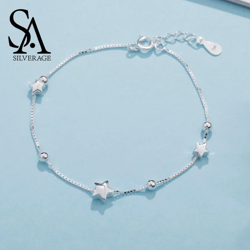 SA SILVERAGE 925 пробы серебро звездный шар Шарм Браслеты и браслеты для Для женщин 925 Серебряный Для женщин браслет серебряный браслет-цепочка