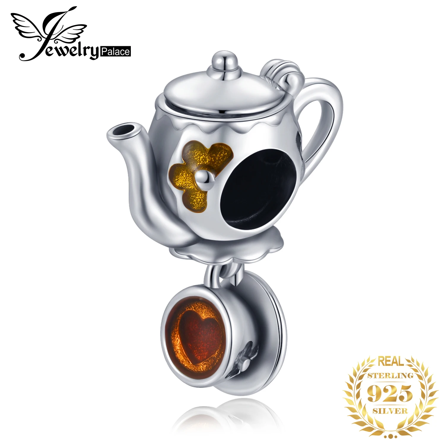 JewelryPalace коричневый эмаль цветок чай Комплект мотаться кофе чашку Шарм бисера Fit браслет 925 пробы Серебряный Новый Лидер продаж