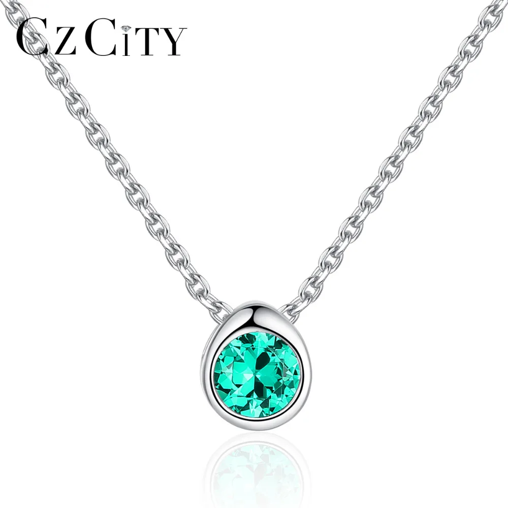 CZCITY звено цепи 925 стерлингового серебра Круглый кулон ожерелья для женщин Свадебные ювелирные изделия топаз; драгоценный камень ожерелье п...