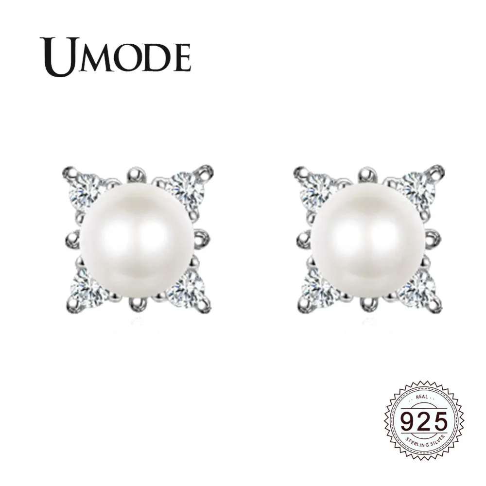 UMODE 5 мм реальные круглый пресноводный жемчуг 925 пробы серебряные шпильки серьги для Для женщин фианитом изысканные ювелирные изделия perolas ...