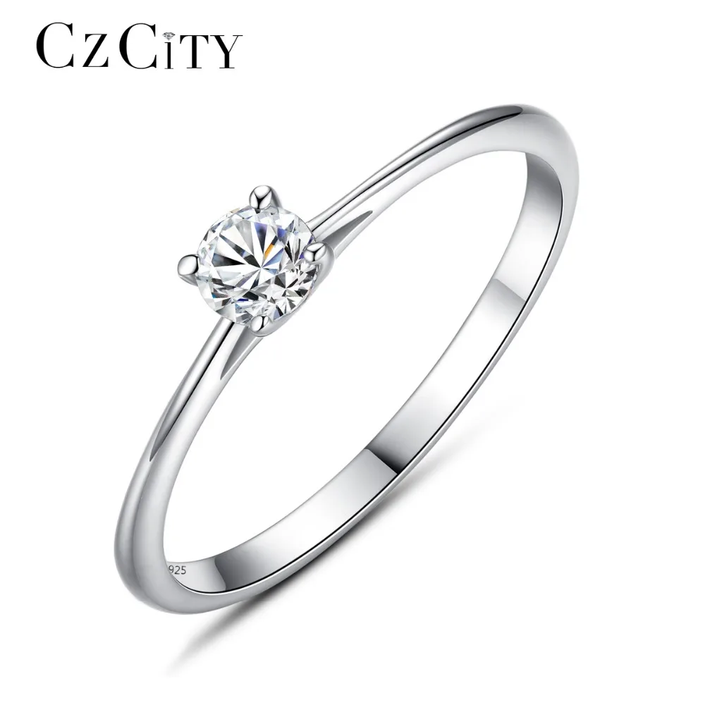 Czcity бренд Простой Классический 4 мм фианит 925 Серебряный перстень Романтические свадебные 925 стерлингов Серебряные ювелирные изделия Кольц...