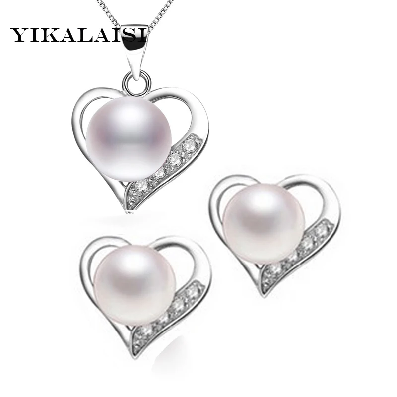 Yikalaisi 2017 100% натуральный пресноводный жемчуг кулон и серьги стерлингового серебра 925 наборы для женщин свадьбы подарки