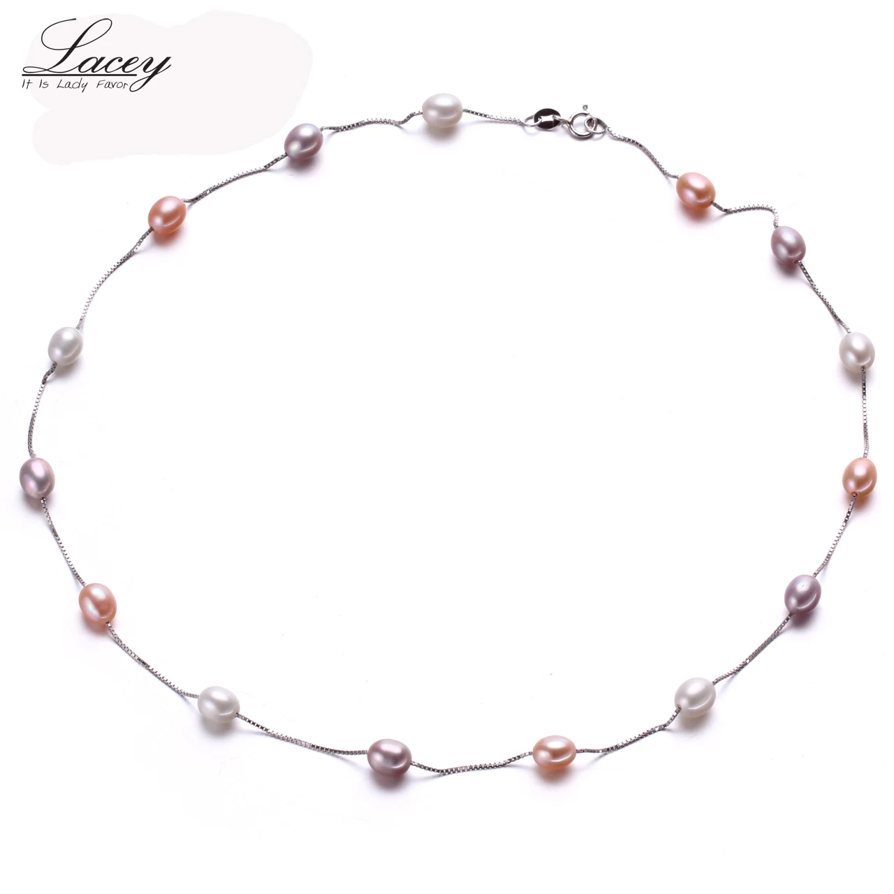 Ожерелье с натуральным жемчугом, 100% Серебро 925 пробы, ожерелье с цепочкой, 6-7 мм, настоящая культивированная пресноводная жемчужина, ювелирные изделия для женщин