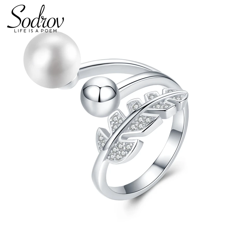 SODROV жемчужное кольцо Подлинная 925 пробы серебро открытым обручение листьев кольца для женщин HR034