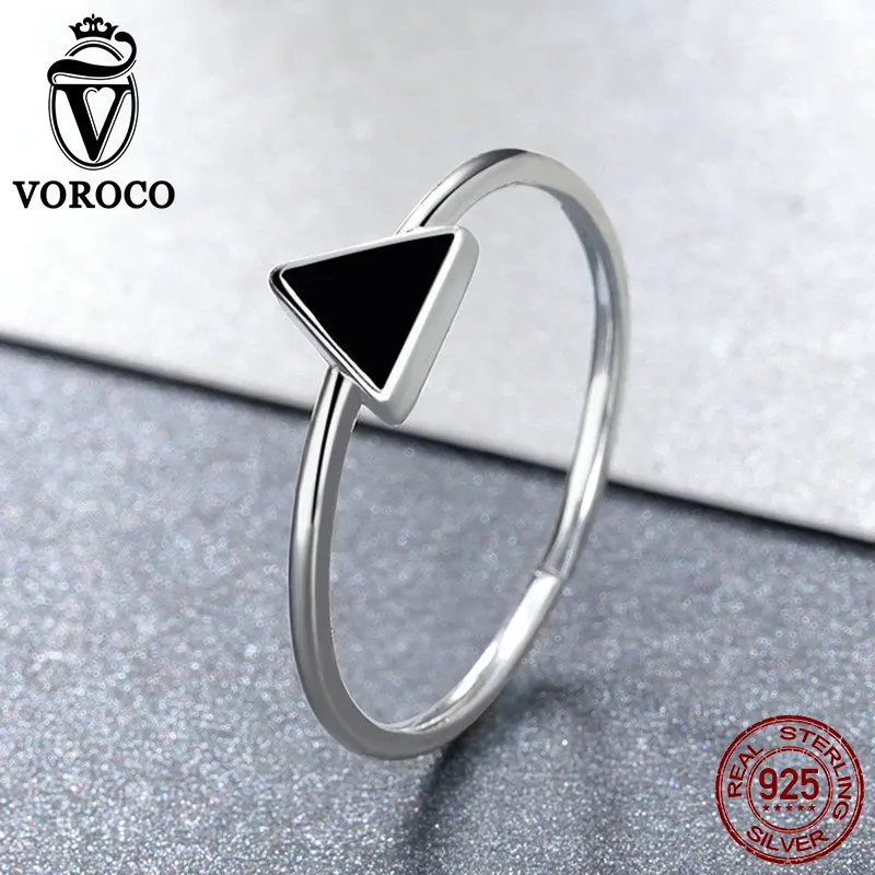 VOROCO 100% Серебро 925 пробы черный треугольники простой Открытое кольцо для женщин женские Современные вечерние подарок серебро ювелирные укра...