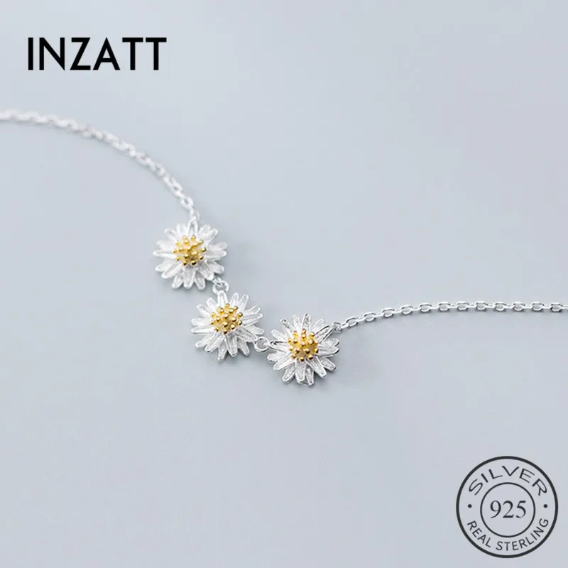 INZATT, Настоящее серебро 925 пробы, кулон в виде цветка, колье, ожерелье для женщин, для дня рождения, вечеринки, изящное ювелирное изделие, милые аксессуары