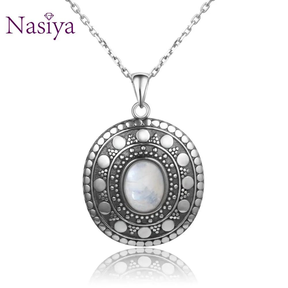 Новый стиль 925 серебряный с лунным камнем подвески ожерелья для женщин мужчин классический овальный дизайн ювелирные изделия повседневная жизнь подарок на день рождения