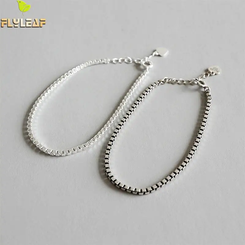 Женский браслет Flyleaf, Изящные Ювелирные Браслеты из стерлингового серебра 925 пробы с цепочкой-коробкой