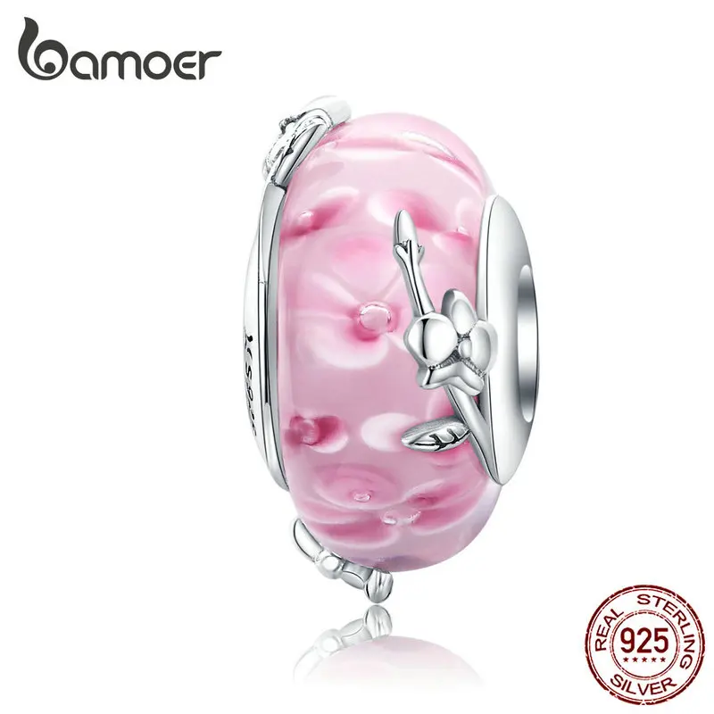 Bamoer резка муранские бусины для женщин браслет или браслет из натуральной 925 пробы Серебряный цветочный Шарм модные украшения SCC1282