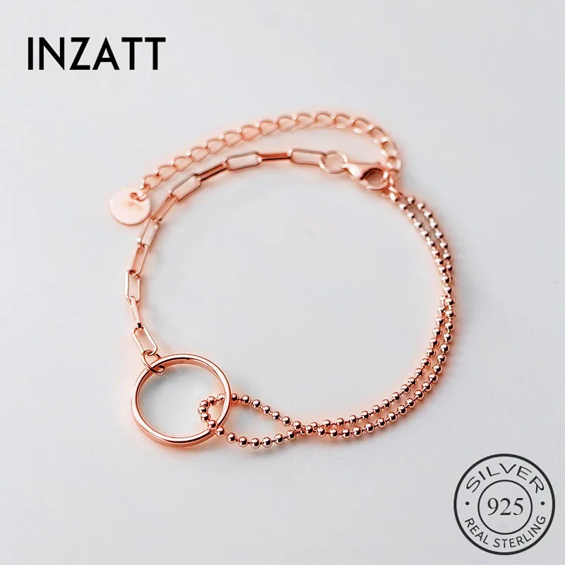 INZATT, настоящее 925 пробы, серебряный геометрический Круглый браслет для модных женщин, вечерние, модные ювелирные украшения, цепочка из бисера, аксессуары