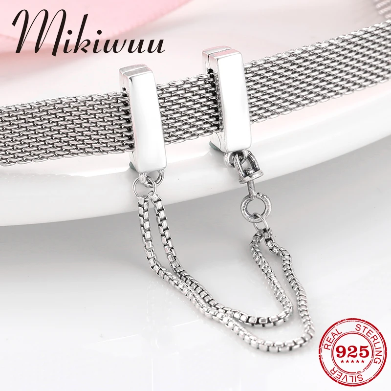 100% 925 пробы серебряные квадратные зажимы безопасная цепочка бусины подходят Pandora очаровательные серебряные 925 браслеты женские оригинальны...