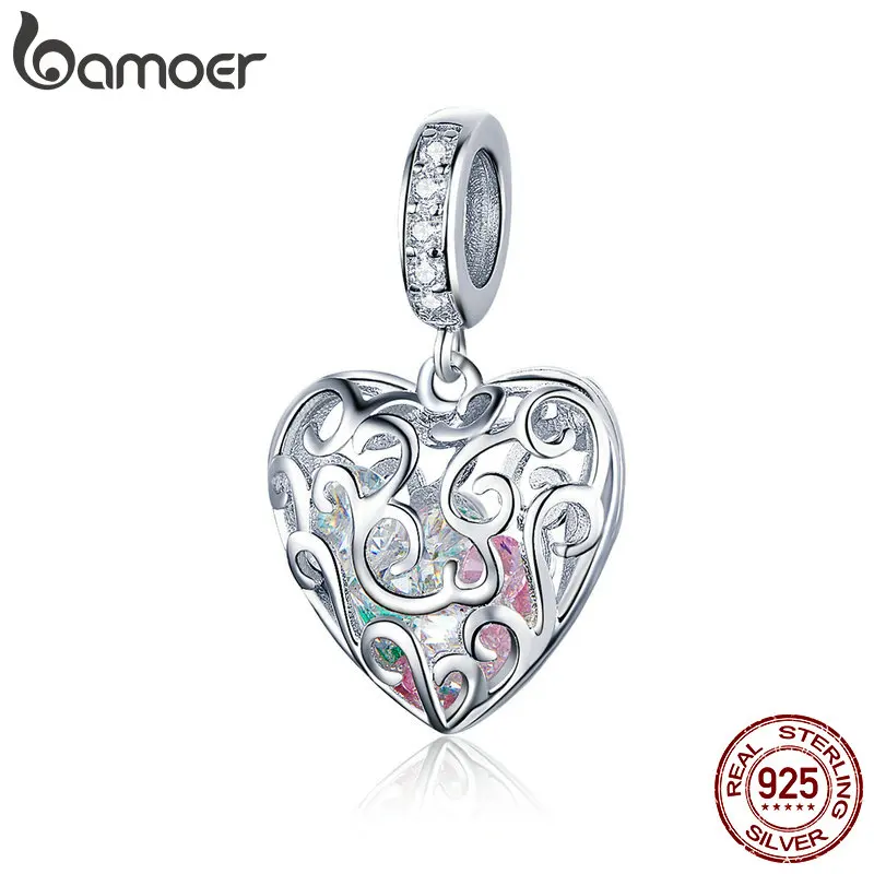 BAMOER Аутентичные 925 пробы серебро Романтическая любовь подвеска в виде сердца fit DIY Браслеты и ожерелья для женщин ювелирные изделия SCC1126