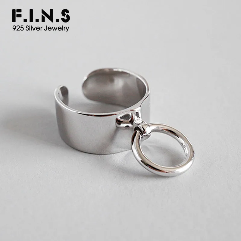Женское кольцо с круглой подвеской F.I.N.S из стерлингового серебра 925 пробы, регулируемое кольцо с открытым манжетом, украшение для женщин