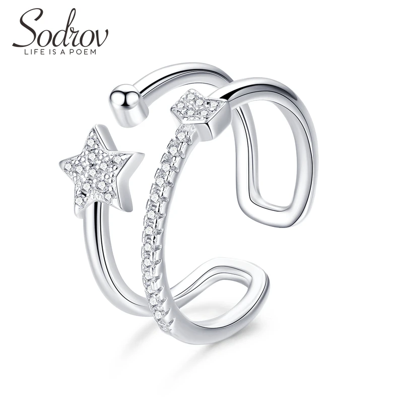 SODROV звезда кольцо из натуральной 925 пробы серебряные открытые обручальные ювелирные изделия для женщин HR046