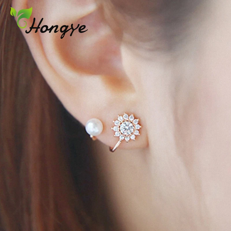 Стильный Цветок AAA циркон серьги из искусственного жемчуга розовое золото романтические женские серьги ювелирные изделия офисные женские ...