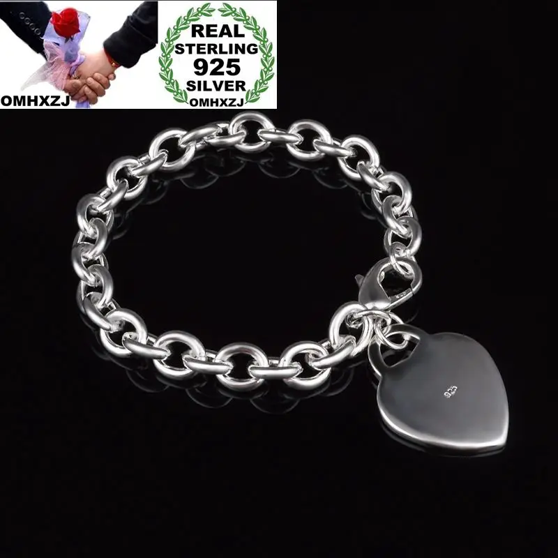 OMHXZJ Оптовая Личность Мода OL женщина вечерние подарок партии Серебряное сердце Шарм толстые цепи 925 пробы серебряный браслет BR73