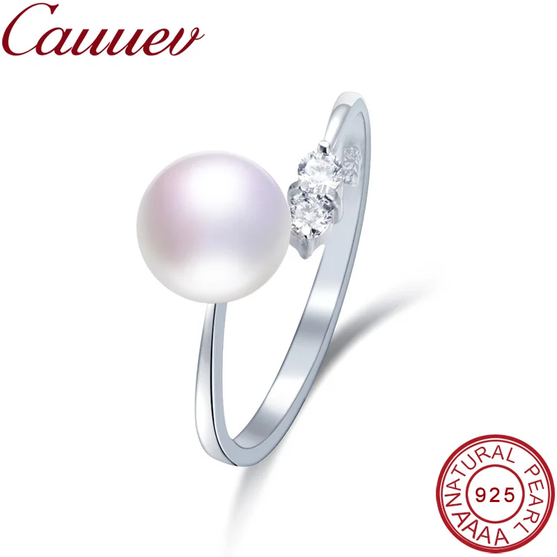 Caueev 8-9 мм высокий блеск 100% натуральный пресноводный жемчуг женские обручальные кольца AAA Блестящий Кристалл 925 пробы серебряные ювелирные и...