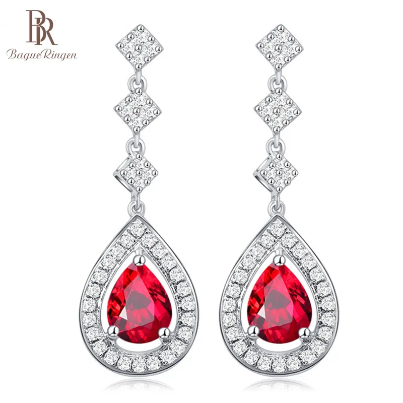 Рубиновые серьги в форме капли воды для женщин, модные серьги-капли, темпераментные женские Серебряные украшения 925, вечерние украшения, под...