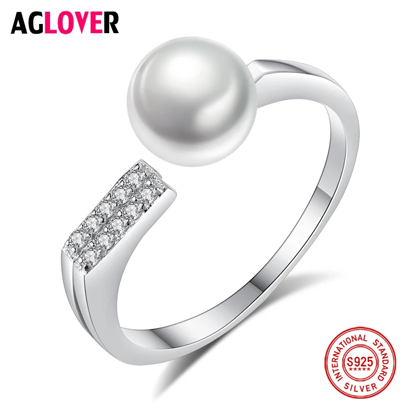 AGLOVER очаровательное кольцо из серебра 925 пробы с диском, изменяемое Размер 7,5 мм, кольцо с натуральным пресноводным жемчугом, ювелирное изделие для женщин, свадебный подарок для девушек, высокое качество