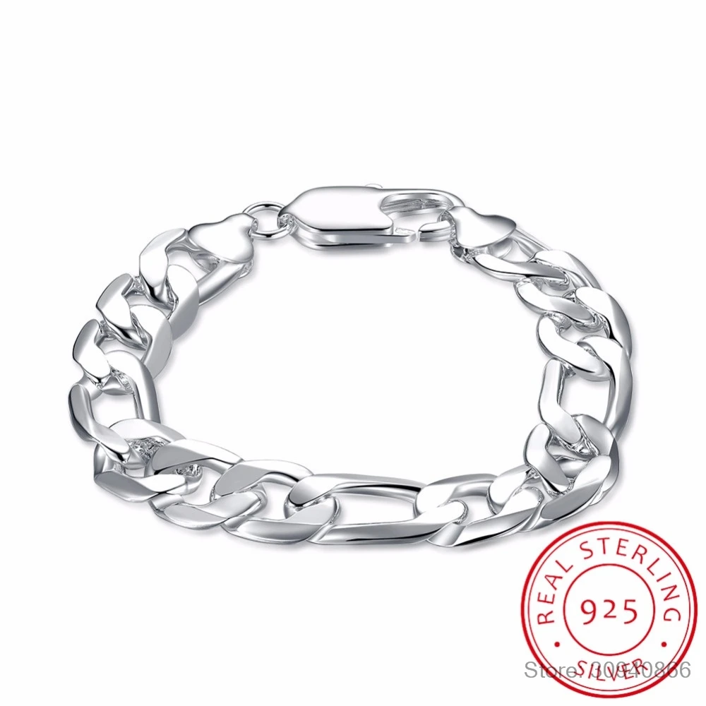 LEKANI Мужская ювелирные украшения 925 серебро 12 мм 20 см цепочка "Фигаро" Браслет Браслеты pulseiras ювелирное изделие плата бесплатная доставка