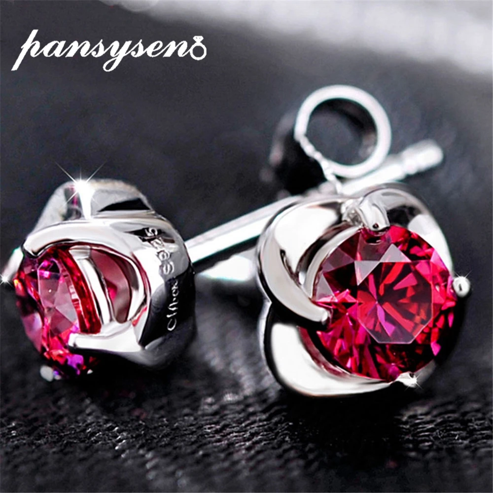 Женские серьги-гвоздики PANSYSEN, модные роскошные серьги из стерлингового серебра 925 пробы с драгоценными камнями и Рубином, подарок на день Святого Валентина