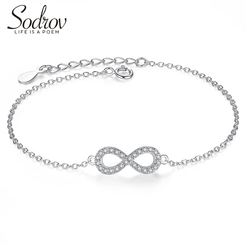 SODROV 925 Серебряный lucky 8 Chian Браслет для женщин серебро 925 Ювелирный Серебряный браслет браслеты из стерлингового серебра