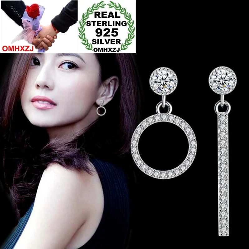 OMHXZJ Оптовая Продажа геометрический асимметрия моды джокер ПР Стиль для женщины подарок круглый линейный 925 стерлингов серебряные серьги ...