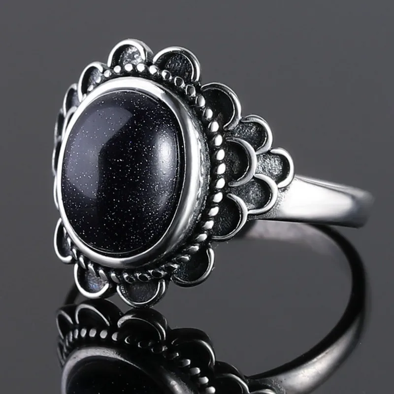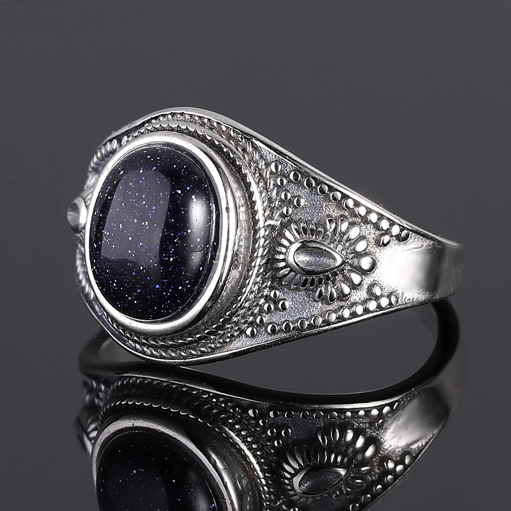 Кольцо из натурального синего песчаника 8x10 мм из стерлингового серебра 925 пробы, ювелирное изделие, ретро овальное кольцо для женщин, подарок, оптовая продажа, подарок на вечеринку, свадьбу