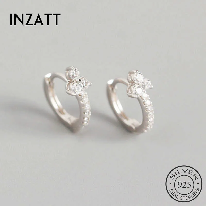INZATT Настоящее серебро 925 пробы циркониевые серьги-кольца цветок для модных женщин вечерние Изящные Ювелирные изделия минималистичные аксессуары
