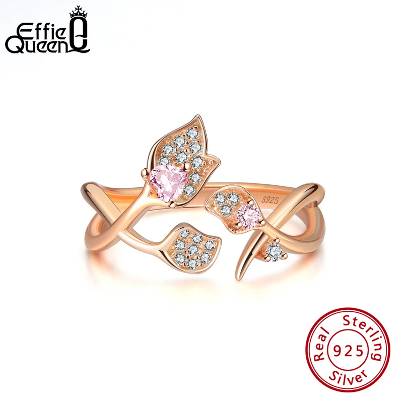 Effie Queen романтические Регулируемые кольца из серебра 925 пробы с розами в форме розового сердца 4A циркон женские ювелирные изделия вечерние EQR03