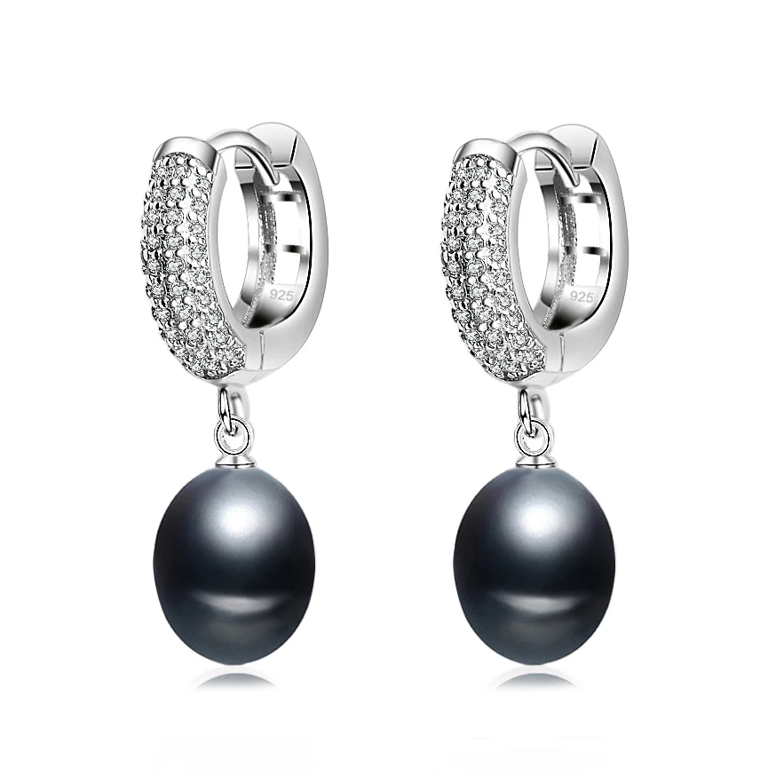 Женские серьги с натуральным пресноводным жемчугом, Подарок на годовщину, свадебные черные серебряные серьги 925 пробы с жемчугом