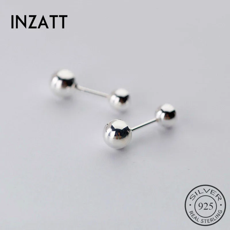 INZATT, настоящее 925 пробы, серебряные, минималистичные, круглые, с бусинами, серьги-гвоздики для модных женщин, вечерние, трендовые, ювелирные и...