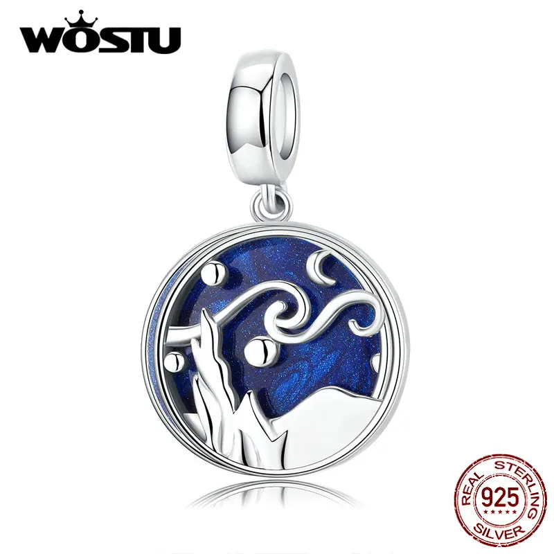 WOSTU, новая мода, 925 пробы, серебро, звездное небо, голубые шармы, подходят к оригинальному браслету, кулон, бусы, Аутентичные, S925 ювелирные изделия CQC1389