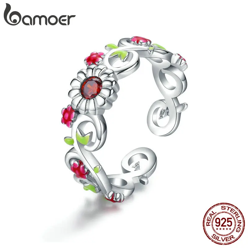 BAMOER Винтаж 925 пробы серебро Цветущая ветка цветок листья регулируемый женские перстни стерлингов серебряные ювелирные изделия BSR023
