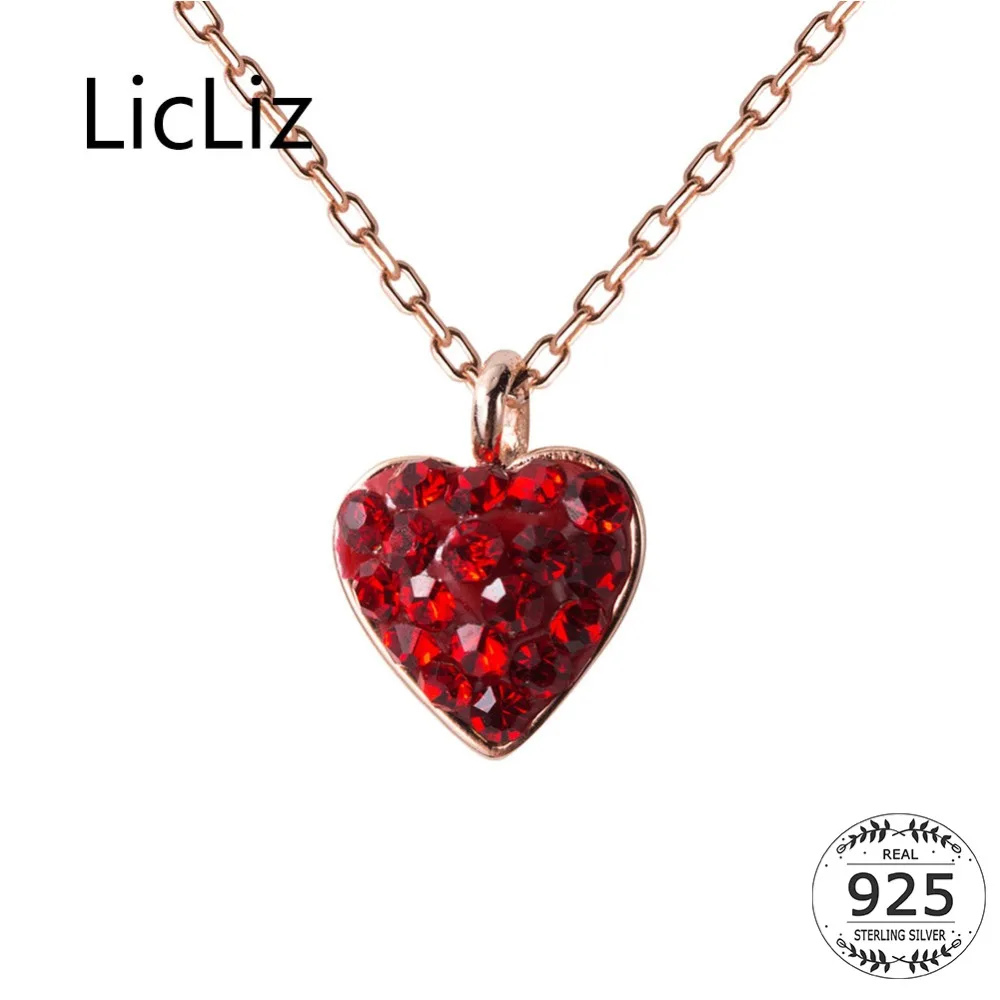 LicLiz новый 925 Серебряный кулон в виде красного сердца ожерелье s для женщин Rhineston Циркон розовое золото ожерелье со звеньями подарки LN0430