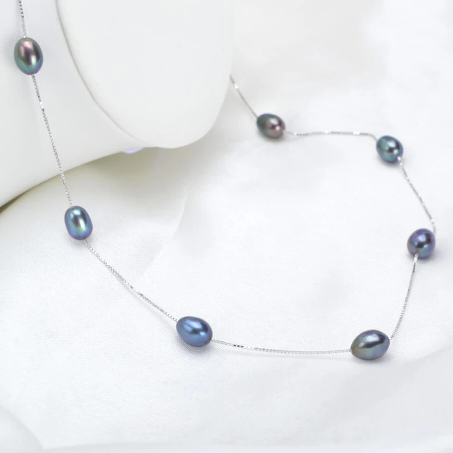 ASHIQI Настоящее серебро 925 проба ожерелье 7-8 мм Настоящее натуральное пресноводное жемчужное ожерелье белая жемчужина ювелирное изделие для ...
