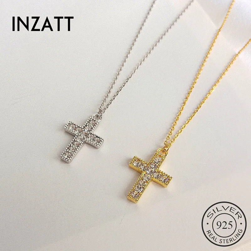 INZATT Настоящее серебро 925 проба циркон крест кулон ожерелье для модных женщин модные ювелирные изделия аксессуары в стиле панк подарок