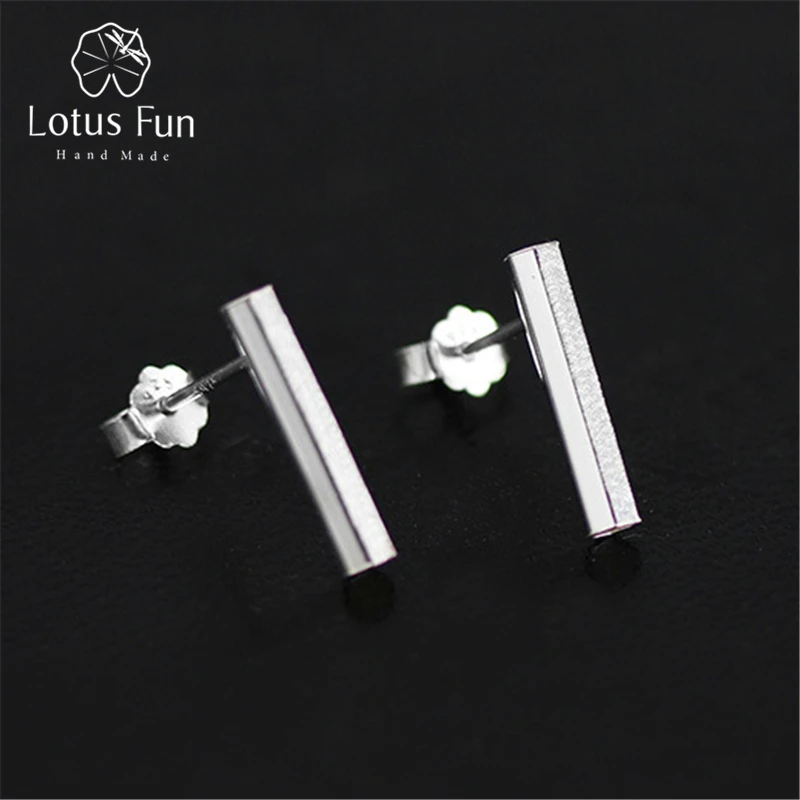 Lotus Fun Реальные Стерлингового Серебра 925 Природных Творческий Ручной Изящных Ювелирных Изделий Простой Гексагональной Призмы Серьги Стержн...
