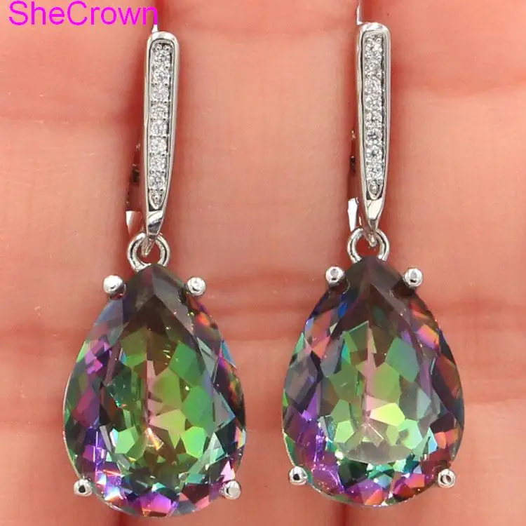 Люкс Топ AAA капли воды форма 18x13 мм огонь с радужным мистическим топазом CZ Дамы Серебряные серьги 35x13 мм