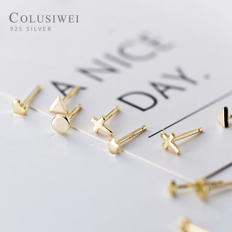 Женские сережки-гвоздики Colusiwei из стерлингового серебра 925 пробы с маленькими сердечками и треугольниками, круглые квадратные серьги-гвоздики для девочек, модные ювелирные изделия для детей