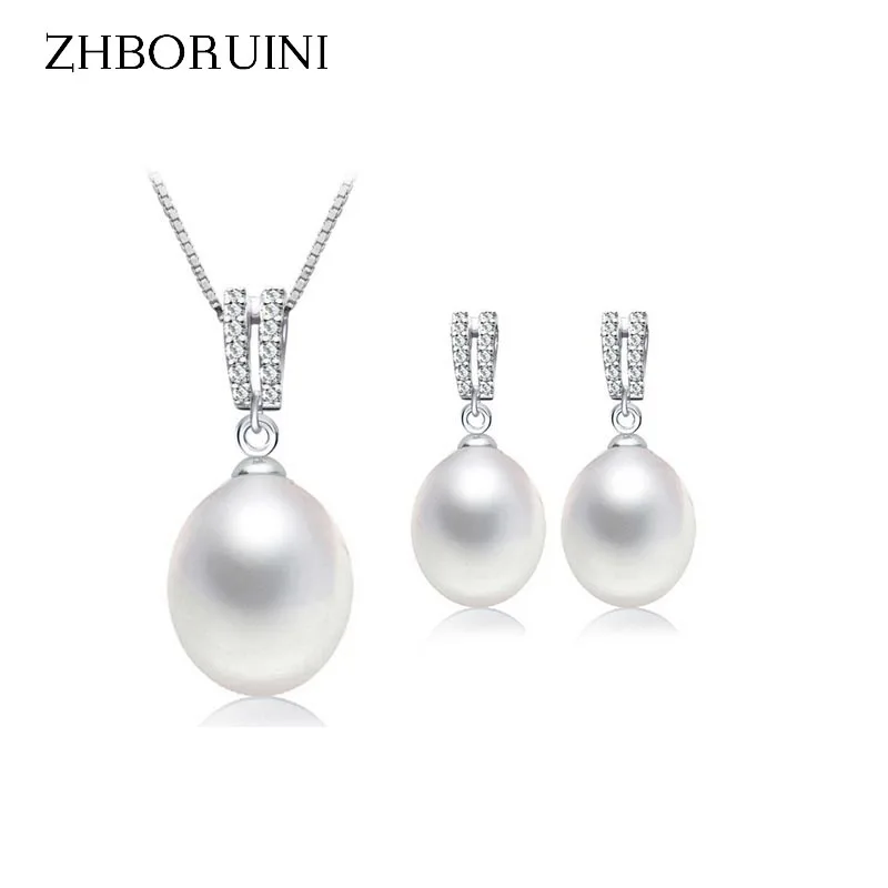 ZHBORUINI Женский комплект ювелирных изделий, жемчужное ожерелье из натурального пресноводного жемчуга, висячие серьги с цирконием, стерлингового серебра 925 пробы, 2019