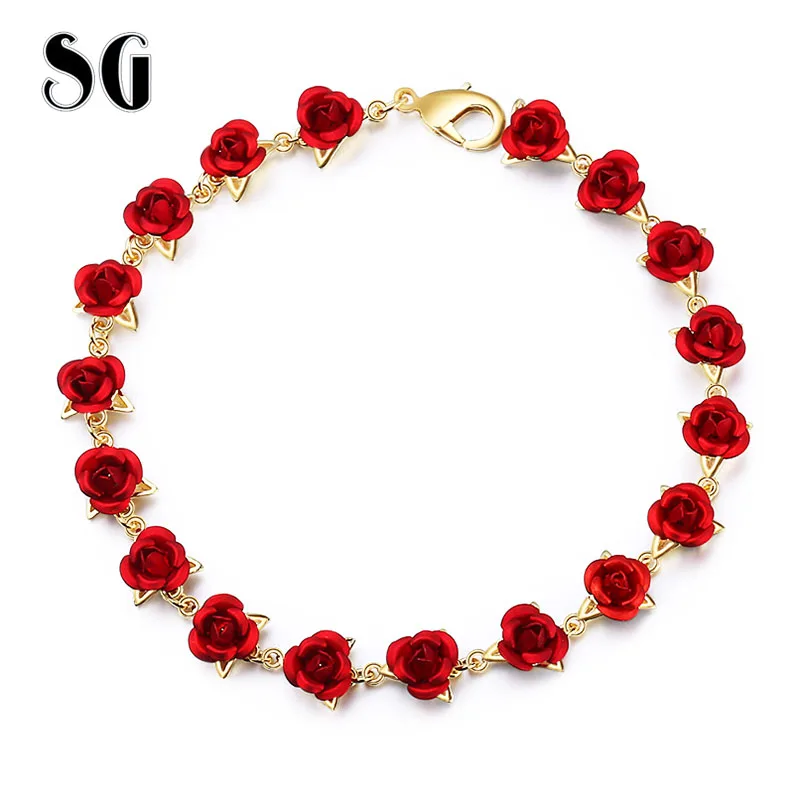 Новинка 18-20 см серебро 925 пробы, Цвет Розовое золото цепочка романтичный браслет с красной эмалью Роза ювелирные изделия подарок на День святого Валентина для влюбленных