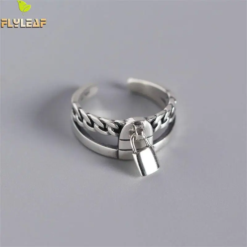 Женское Двухслойное кольцо Flyleaf, геометрическое Винтажное кольцо с цепочкой-замком из серебра 925 пробы
