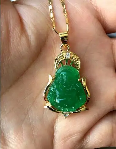 2 стиля счастливый зеленый нефрит Новый Будда кулон и ожерелье