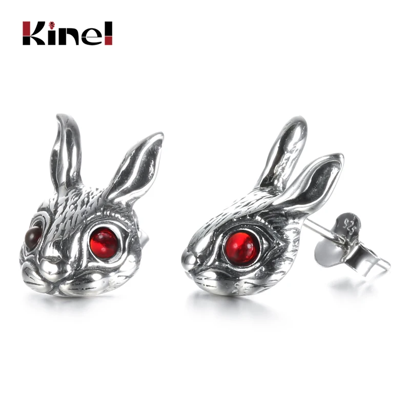 Kinel 2020 Новое поступление 3D серьги-гвоздики с кроликом S925 Стерлинговое Серебро серьги с Рубиновыми глазами для женщин Подарки На Хэллоуин Винтажные Ювелирные Изделия