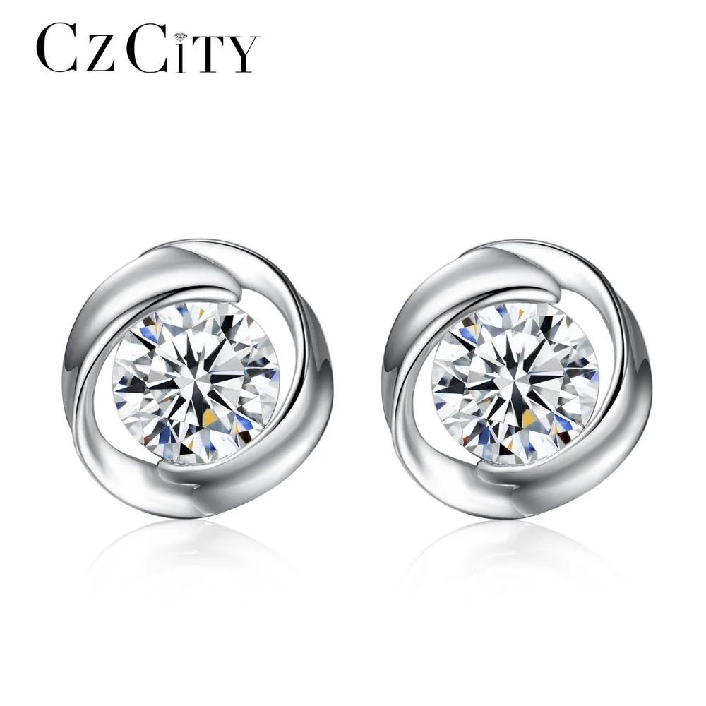CZCITY брендовые Симпатичные серьги-гвоздики для Для женщин простой розы CZ камень подлинный 925 пробы серебряные ювелирные изделия, серьги опто...