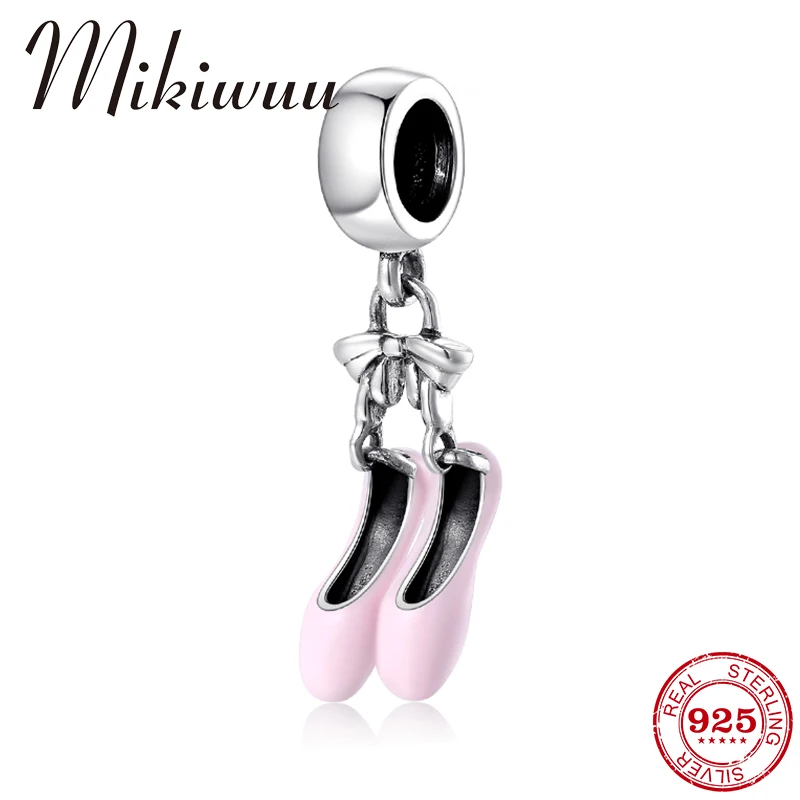 925 пробы серебряный розовый эмаль женские бальные туфли с бантом изящная подвеска из бисера Ювелирных изделий fit оригинальный браслет подве...