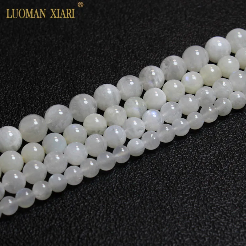 Прекрасный AAA 100% натуральный лунный камень Whit круглые драгоценные камни бусины для самостоятельного изготовления ювелирных изделий браслет ожерелье 6/7/8/9 мм Strand 15''
