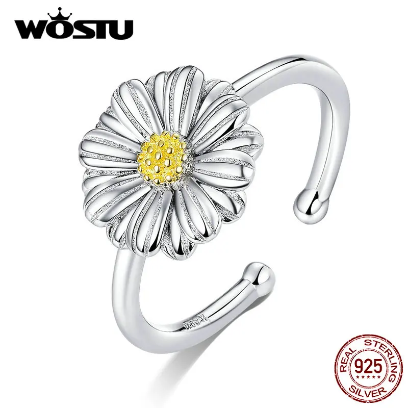 WOSTU Горячая Мода 925 пробы серебро ромашка цветок кольца для Для женщин Регулируемый Открытие Кольца палец Свадебная вечеринка украшения CQR616